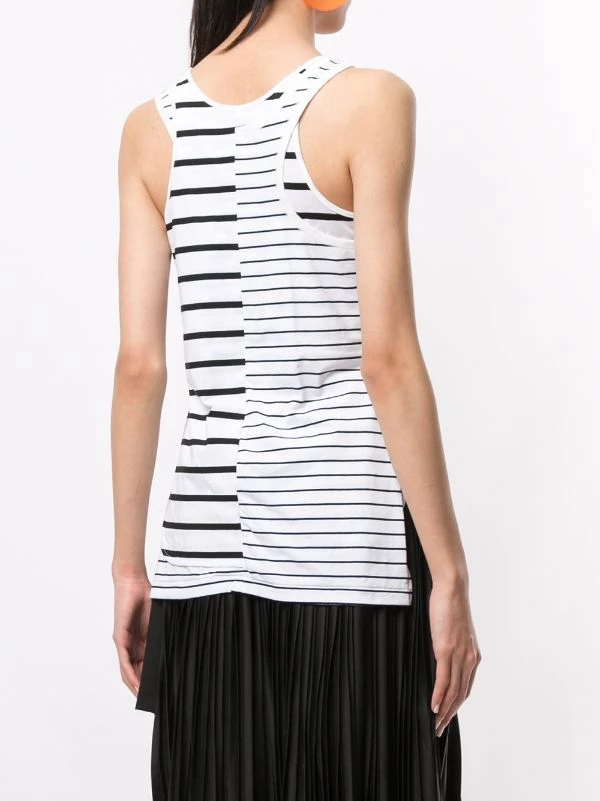 Black and white cotton asymmetric striped vest from Maison MIHARA YASUHIRO featuring horizontal stripes, a scoop neck, a sleeveless design, a racer back and side slits.