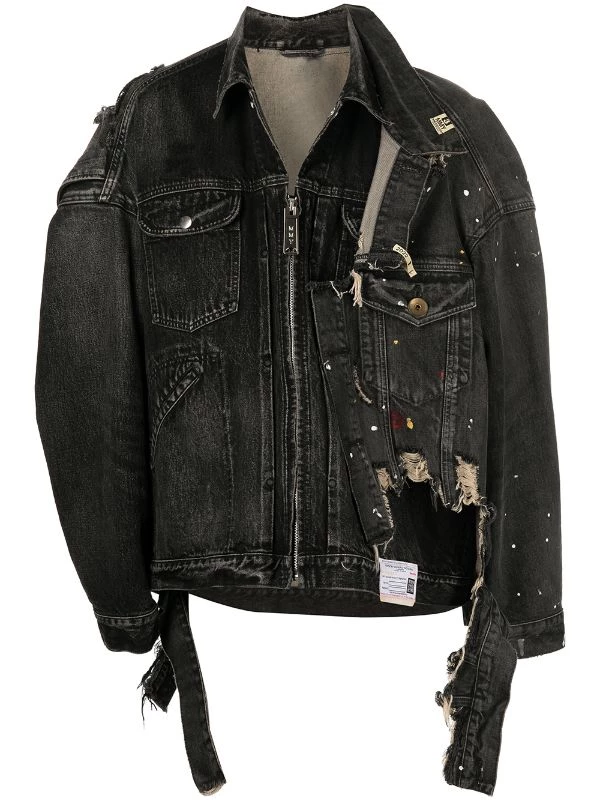 Maison Mihara Yasuhiro distressed asymmetric denim jacket